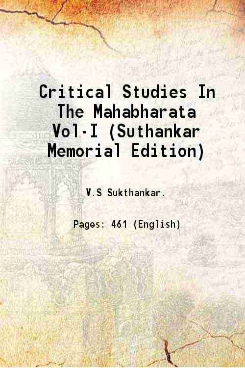 . He is principally known as the General Editor of the. Sukthankar 4 May 1887 21 January 1943 was an Indologist and scholar of Sanskrit. This is the first volume of an extremely important text containing the studies of the Mahabharata by V S Sukthankar.
